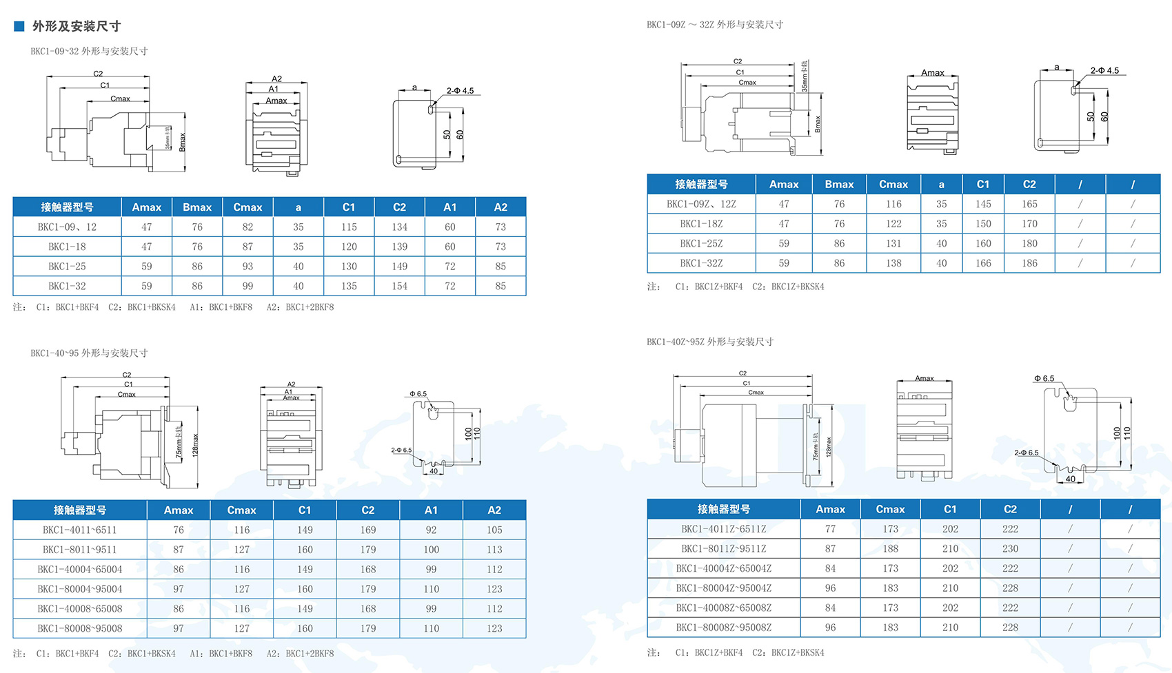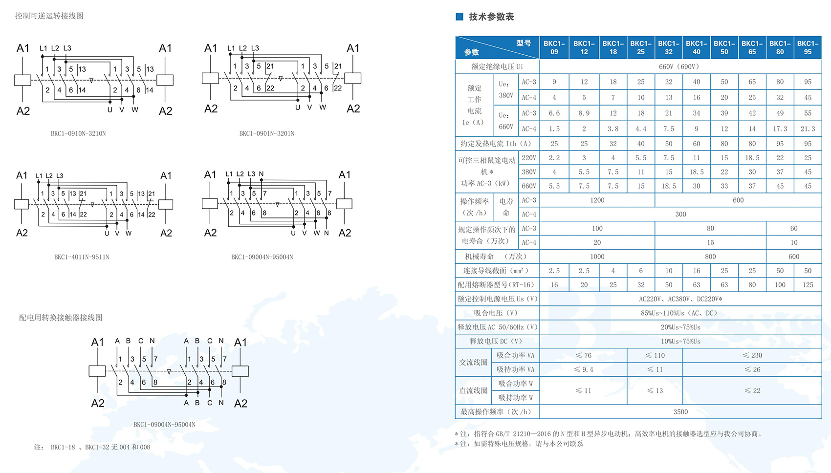BKC1-09~95系列交換打仗器,首要用于交換50Hz(或60Hz),額外絕緣電壓為690V,在AC-3利用種別下額外任務電壓為380V時額外任務電流為9A~95A的電路中,供遠間隔接通與分斷電路及頻仍起動、節制交換電念頭;并可與恰當的熱過載繼電器構成電磁起動器,以掩護能夠產生過負荷的電路。產物合適規范:IEC 60947-4,GB/T 14048.4,IEC 60947-5,GB/T 14048.5
