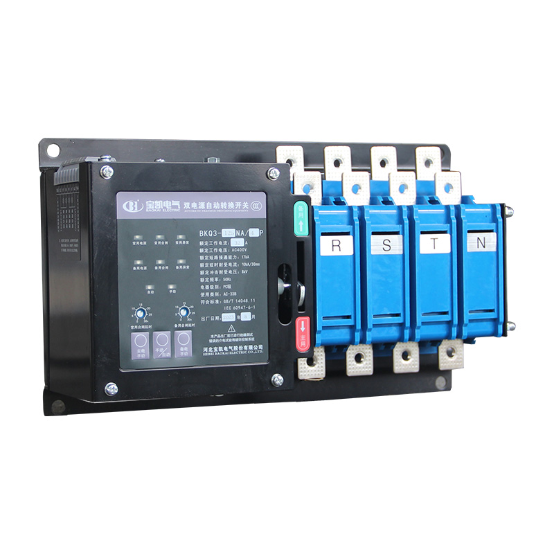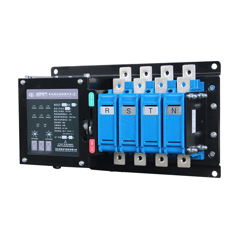 BKQ3-NA/N系列PC級雙電源主動轉換開關電器合用于交換額外任務電壓400V及以下,額外頻次50/60Hz,額外電流16A至400A的應急供電體系中兩路電源間的主動轉換,以確保主要負荷持續、寧靜、靠得住的運轉。BKQ3-NA/N兩段位主動轉換開關電器出格合用于金融修建、電信和軌道交通等行業請求主動轉換經常使用電源和備用電源的場合,具備電網-電網、電網-發機電的供電形式。產物合適GB/T 14048.11《高壓開關裝備和節制裝備 第 6-1 局部:多功效電器 轉換開關電器》。