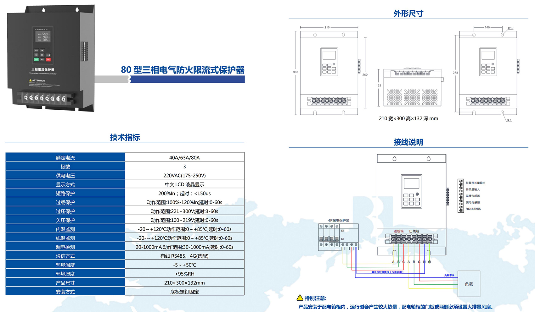BKFCP系列電氣防火限流式掩護器,是一款能及時精確檢測出用電回路的電流,并能以微秒級速率疾速限定短路電流以實現滅弧掩護,并集電壓、電流、頻次、溫度(選配)、泄電(選配)等多種功效于一體,且具備智能化闡發才能的新型用電寧靜監控裝配。當被掩護線路中發生短路毛病時,電氣防火限流式掩護器能以微秒級速率疾速限定短路電流以實現滅弧掩護,在由短路發生的電流遠未到達短路電流前就實現限流,從而防備電氣線路短路進程中引發的持續拉弧打火等引燃可燃物形成的火警變亂,保證利用場合職員和財產的寧靜。